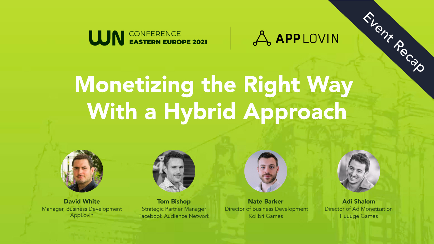 The virtual event was moderated by David White, Manager of Business Development at AppLovin, the panelists included Tom Bishop, Strategic Partner Manager at Facebook Audience Network, Nate Barker, Director of Business Development at Kolibri Games, and Adi Shalom, Director of Ad Monetization at Huuuge Games.