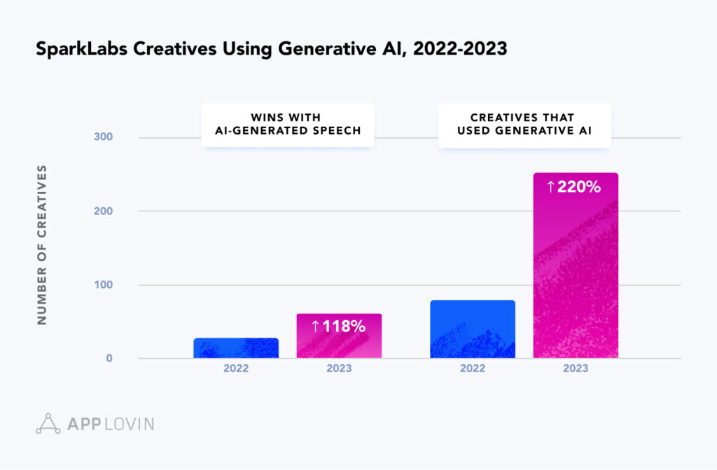All of these insights were pulled from AppLovin and SparkLabs’ recent report, Performance-Driven Ad Trends 2024: Generative AI + Top Ad Creative Strategies.