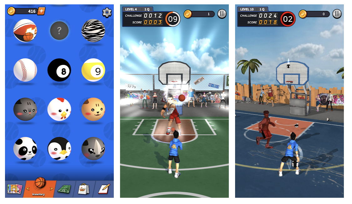 簡単な操作でバスケットボールを投げ、敵のディフェンスを避けてシュートを決めるシンプルなゲームです。