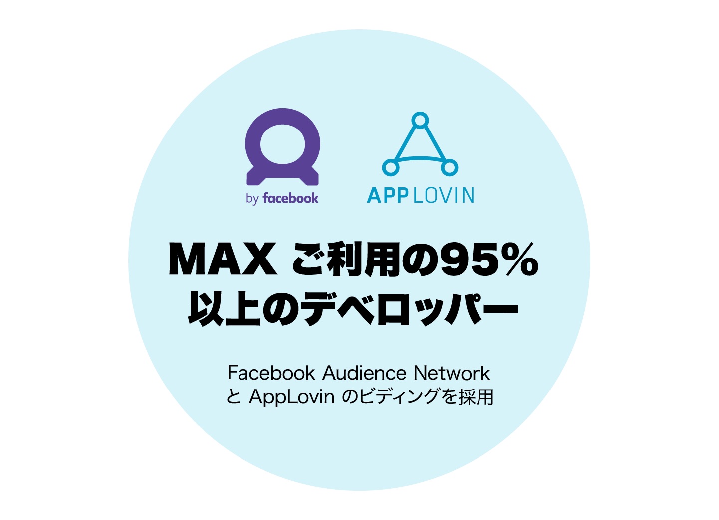 MAX がサポートするアプリ内ビディングパートナーは9つで、業界内では最多です。最大級の需要を擁する Facebook Audience Network や AppLovin のほか、Vungle、InMobi、AdColony などを含みます。