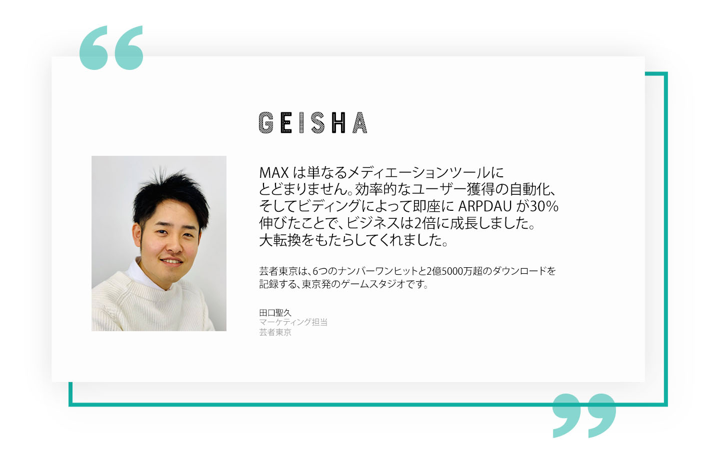 AppLovin はデベロッパー様の洗練されたニーズを理解しています。現在のマーケットでは、1つの側面だけのソリューションでは十分ではありません。MAX は、新たなヒット作誕生とビジネス全体の成長を実現する最も強力なソリューションです。