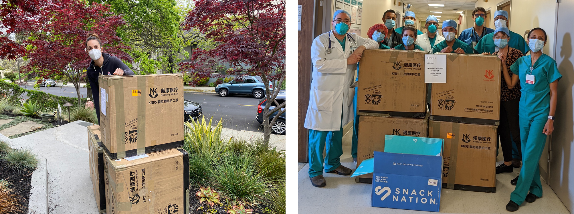 AppLovin は2月初旬、新型コロナウイルス感染症拡大の発祥源である中国湖北省武漢の顧客に、マスクやゴーグルなどの個人用保護具を湖北慈善総会を通じて寄付しました。ウイルス感染が広範囲に拡大し続けている現在も、トロントからニューヨーク、ジョージア、ベイエリアに至るまで、北米のさまざまな病院に15,000枚のマスクを寄付するなど、引き続きコミュニティの支援に取り組んでいます。AppLovin の CMO である Katie Jansen は、こうしたマスクの一部をカリフォルニア州オークランドのサミット病院(Summit Hospital)に届けた際に、医療従事者が患者の治療にあたりながら自分たちの安全を維持するため、1つのマスクを2日も3日も使い続けながら、自分自身を守るための最善を尽くしていたことを知りました。