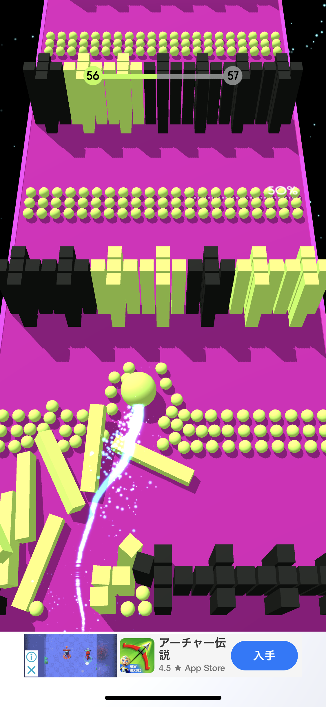 色鮮やかなステージをボールで進んで行く、とてもシンプルなゲーム。物理を上手く駆使してクリアしていく必要があるので、スピードの微調整などが大事です。ゴールまでハラハラドキドキするので、ステージをクリアした時の達成感ははんぱないでー!