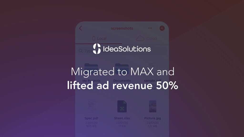 AppLovin과 협력을 시작한 후, IdeaSolutions 개발팀은 인기 있는 파일 관리 앱인 Amerigo를 MAX로 성공적으로 마이그레이션했습니다. MAX의 간편한 설정과 높은 디맨드 덕분에 Amerigo의 총 광고 매출은 50% 증가했으며, IMP/DAU 리프트도 전월 대비 17.5% 증가하였습니다.