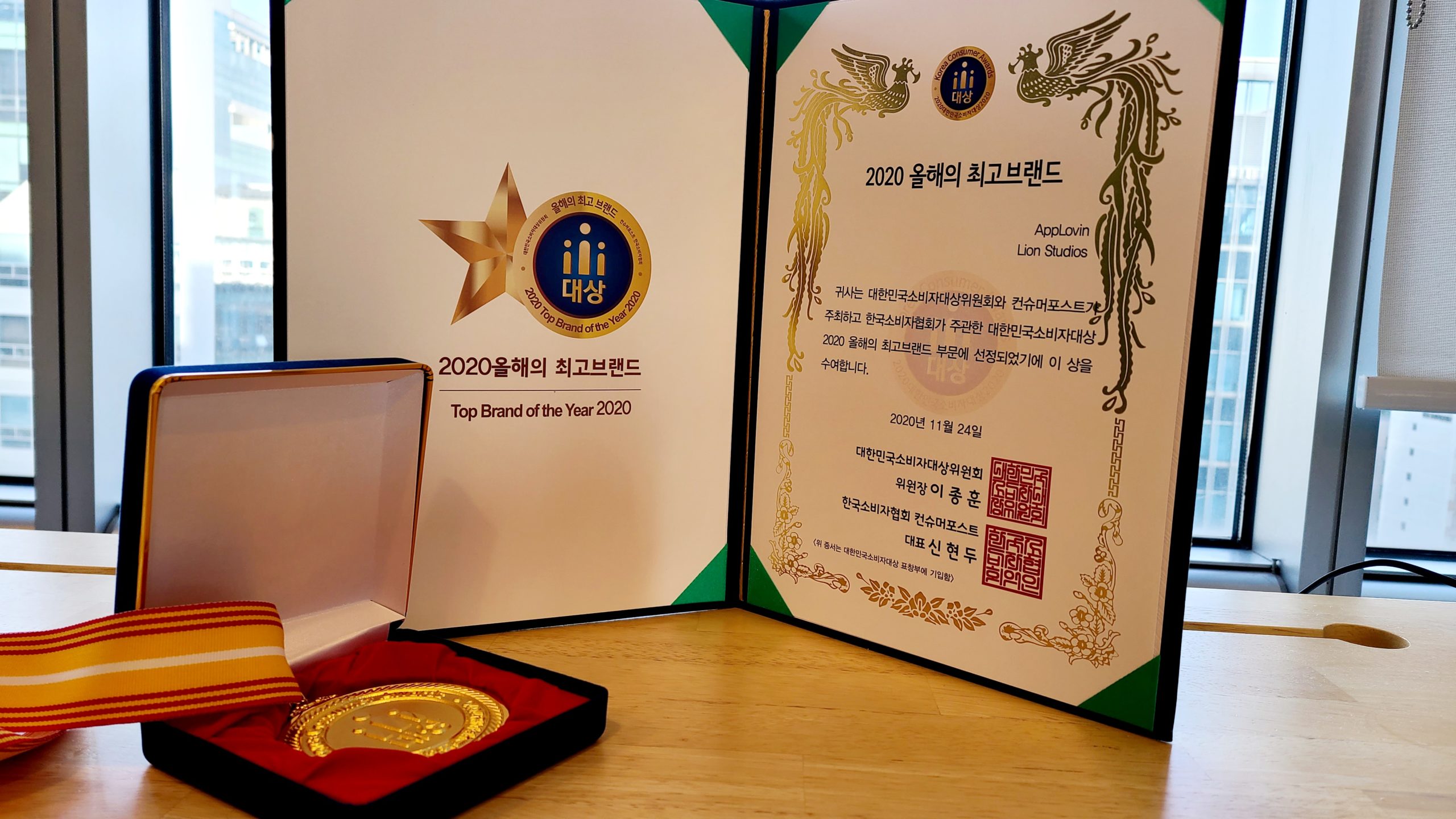 AppLovin의 게임 퍼블리싱 스튜디오 Lion Studios가 2020년 한국 소비자협회 주관 2020대한민국소비자대상에서 “올해의 최고 브랜드”부문에 선정되었습니다!